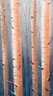 Birds on Birch  16 x 20  Sold